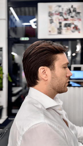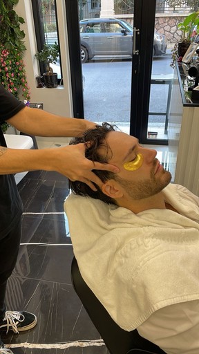 Η υπηρεσία παρέχεται σε ξεχωριστό lounge με εξειδικευμένο προσωπικό — ξεχωριστά από τον κύριο χώρο του κουρείου για μέγιστη άνεση και ιδιωτικότητα.